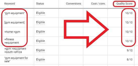10/10: The Perfect Google Quality Score, 4 times in one campaign!