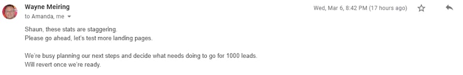 93 Leads in 21 days when Andre asked us to switch the campaign off as he did not have the capacity to keep up with the volume of leads.