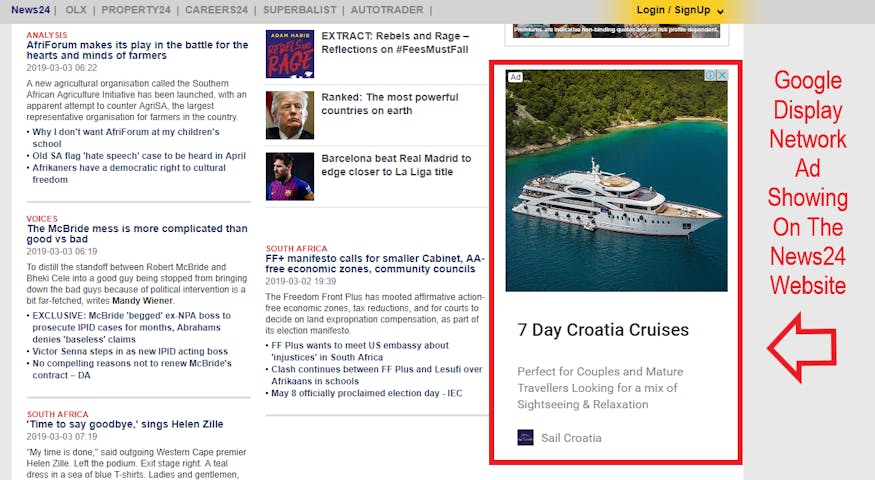 You may notice that when you are on websites such as Property24 there are ads that regularly show up in your articles. This is the Google Display Network targetting you.